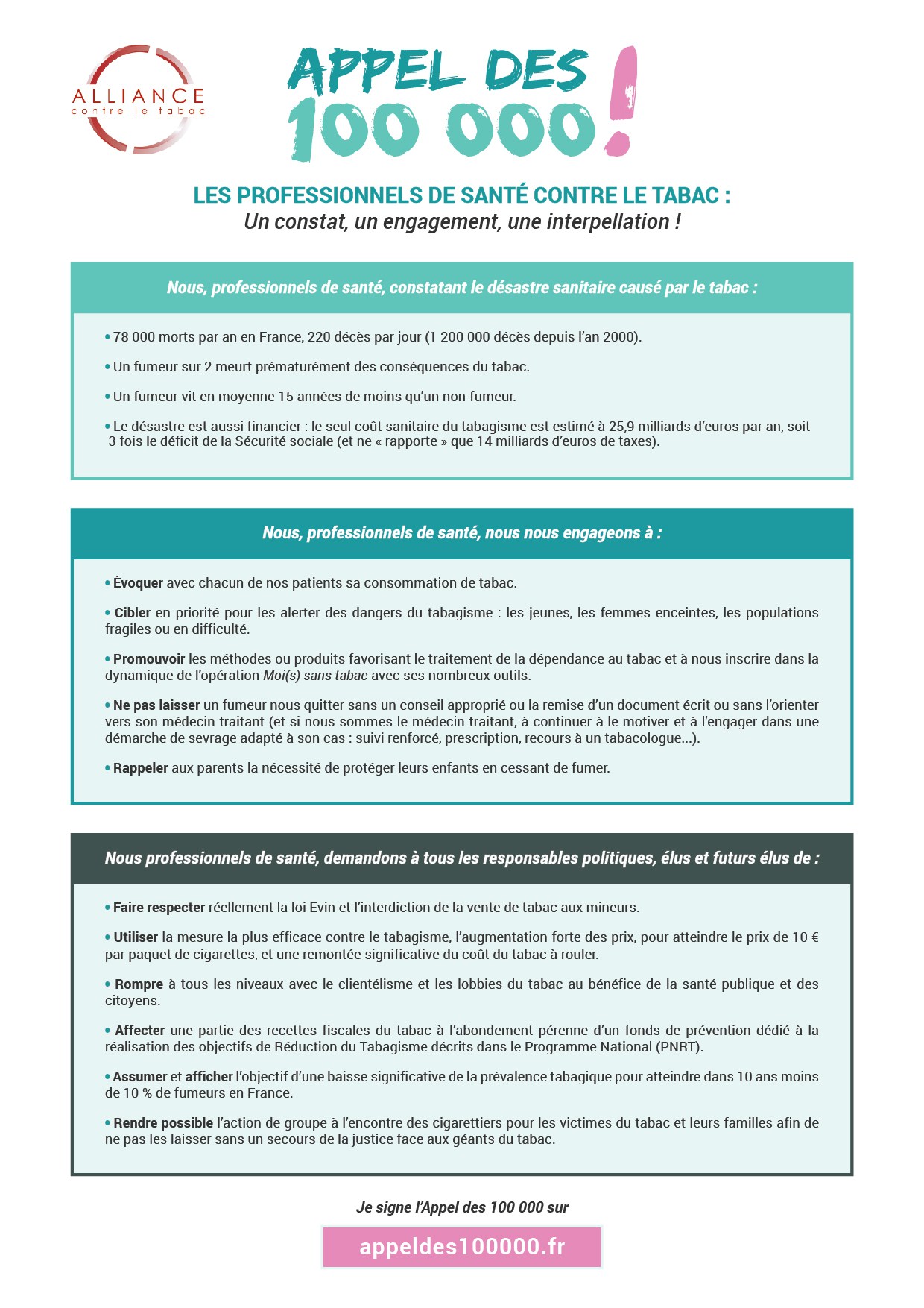 Appel des 100 000 contre le tabac !