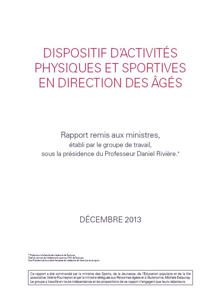Le mardi 14 janvier 2013, le Pr Daniel Rivière de Toulouse a remis à madame Valérie FOURNEYRON, ministre des sports, de la jeunesse, de l’éducation populaire et de la vie associative, et à Michèle DELAUNAY, ministre déléguée aux personnes âgées et à l’autonomie, le rapport du groupe de travail interministériel qu'il a coordonné intitulé "Dispositif d’activités physiques et sportives en direction des âgés".