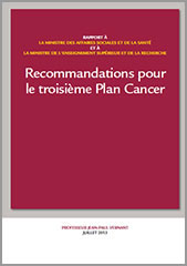 Le Pr Vernant vient de présenter à la ministre des Affaires sociales et de la Santé et à la ministre de l'Enseignement supérieur et de la Recherche ses recommandations pour le 3e plan cancer. L'ensemble du document est consultable ici : http://www.e-cancer.fr/toutes-les-actualites/2755-plan-cancer/7845-recommandations-pour-le-troisieme-plan-cancer.