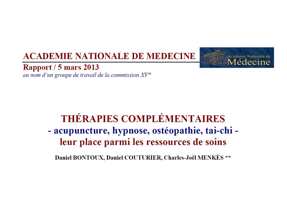 Source Extrait du rapport de l’académie de médecine http://www.academie-medecine.fr/Upload/4.rapport%20Thérapies%20complémentaires1.pdf