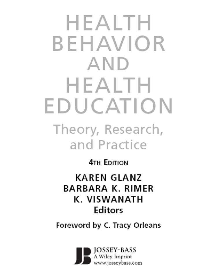 L'ouvrage, intitulé 'Health Behavior and Health education' couvre en quelques 600p l'ensemble de la thématique, aux travers des différents chapitres suivants :