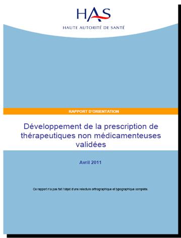 Je vous invite à lire le rapport d'orientation récemment publié par la Haute Autorité de Santé (HAS) sur demande de la Direction de la Sécurité Sociale (DSS) sur le thème 'Prescription des thérapeutiques non médicamenteuses validée'.